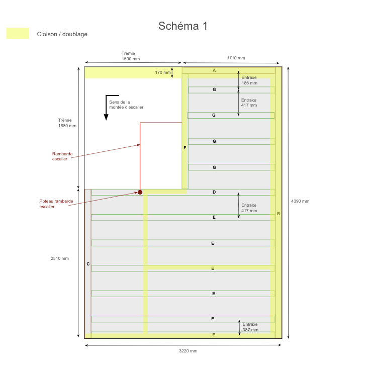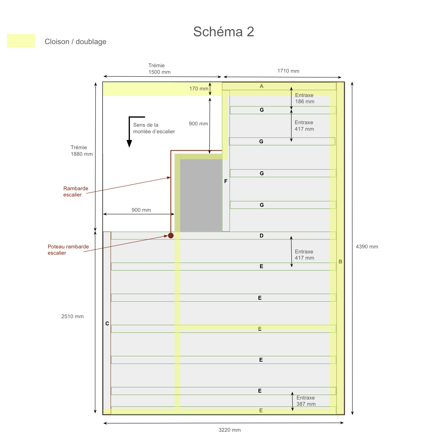 Mais cela pose de nouvelles questions, car je ne sais comment effectuer le solivage de la partie en gris foncé.