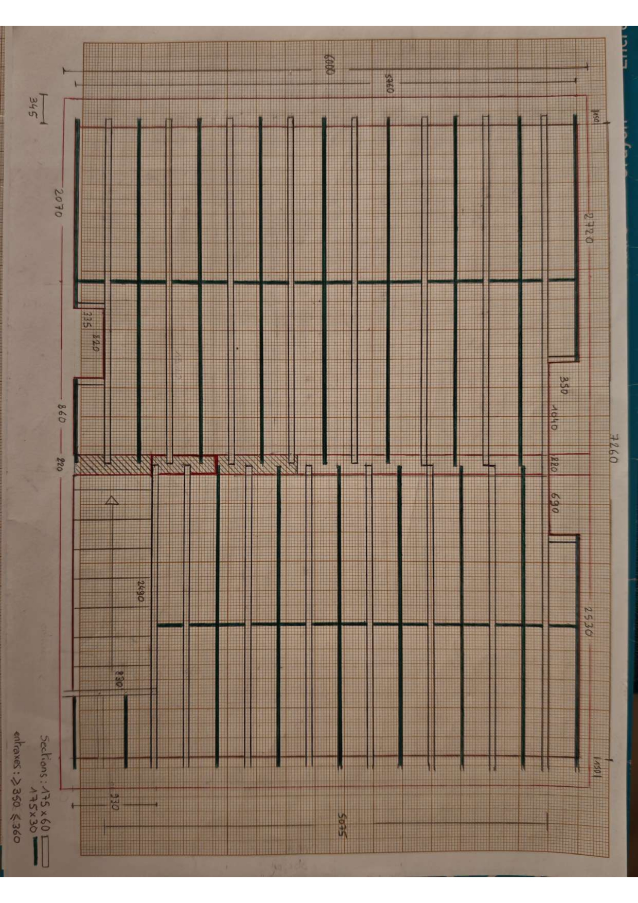 Je souhaite transformer mes combles en combles aménagés (chambre parentale) . Voici le solivage actuel exprimé en millimètres : pièce de 5760 (murs mitoyens) x 7260 (pignons de rue et jardin d epaisseur 345) sur les pignons le solivage repose de 150 entre les rangees de briques, il repose d autre part sur un mur de refend d epaisseur 220 allant d un mur mitoyen a l autre. Sur le mur de refend il y a un linteau en beton armé (ou repose l escalier bois) en quiquonce avec un autre linteau plus bas permettant de contourner l escalier (ouverture)puis se prolonge totalement en briques jusqu'à traverser le conduit de cheminée double 1950x350 ( en briques rouges pleines aussi avec chevêtre bois /beton) jusqu'au mur mitoyen. Les pseudo Muralieres perpendiculaires a cela sont en section 175x30 tandis que le reste du solivage est en alternance de 175x60 (17 pieces) et 175x30 (14 pieces) la tremie d escalier et le chevetre de cheminée sont en 175x60 (inclus dans les 17 pieces). Des entretoises en 175x30 sont placées a mi bois tout le long parallèlement au mur de refend. Nous en arrivons donc a la double question suivante :