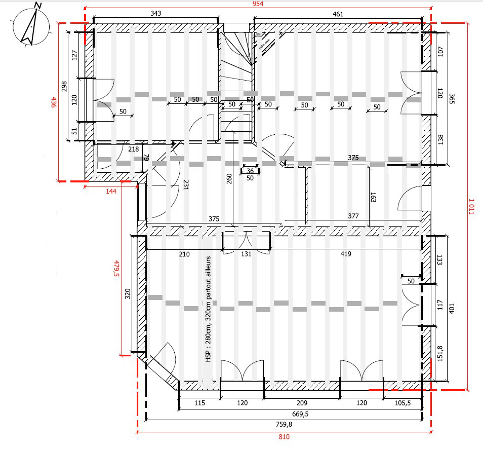 La maison fait 9m65 de large avec un mur de refend en pierre de 25 cm d'epaisseur ( lui même reposant sur un mur en 45cm cette fois ci )