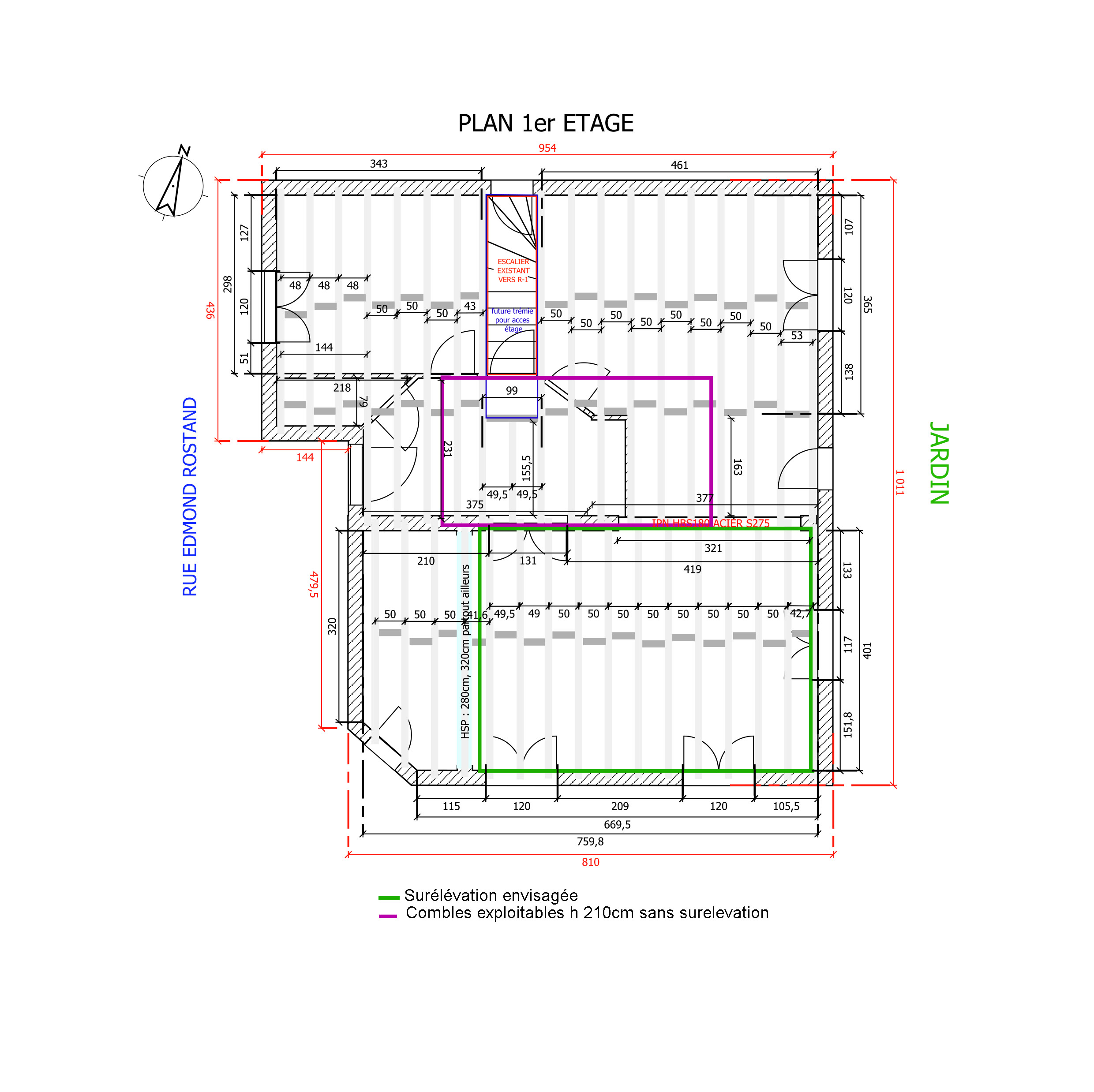 On a donc 5m40 à porter pour le coté Nord et 4m pour le coté Sud .