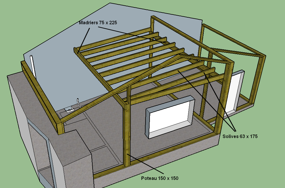 l'ossature bois. (Pour une meilleure visibilité sur l'image ci-dessous,