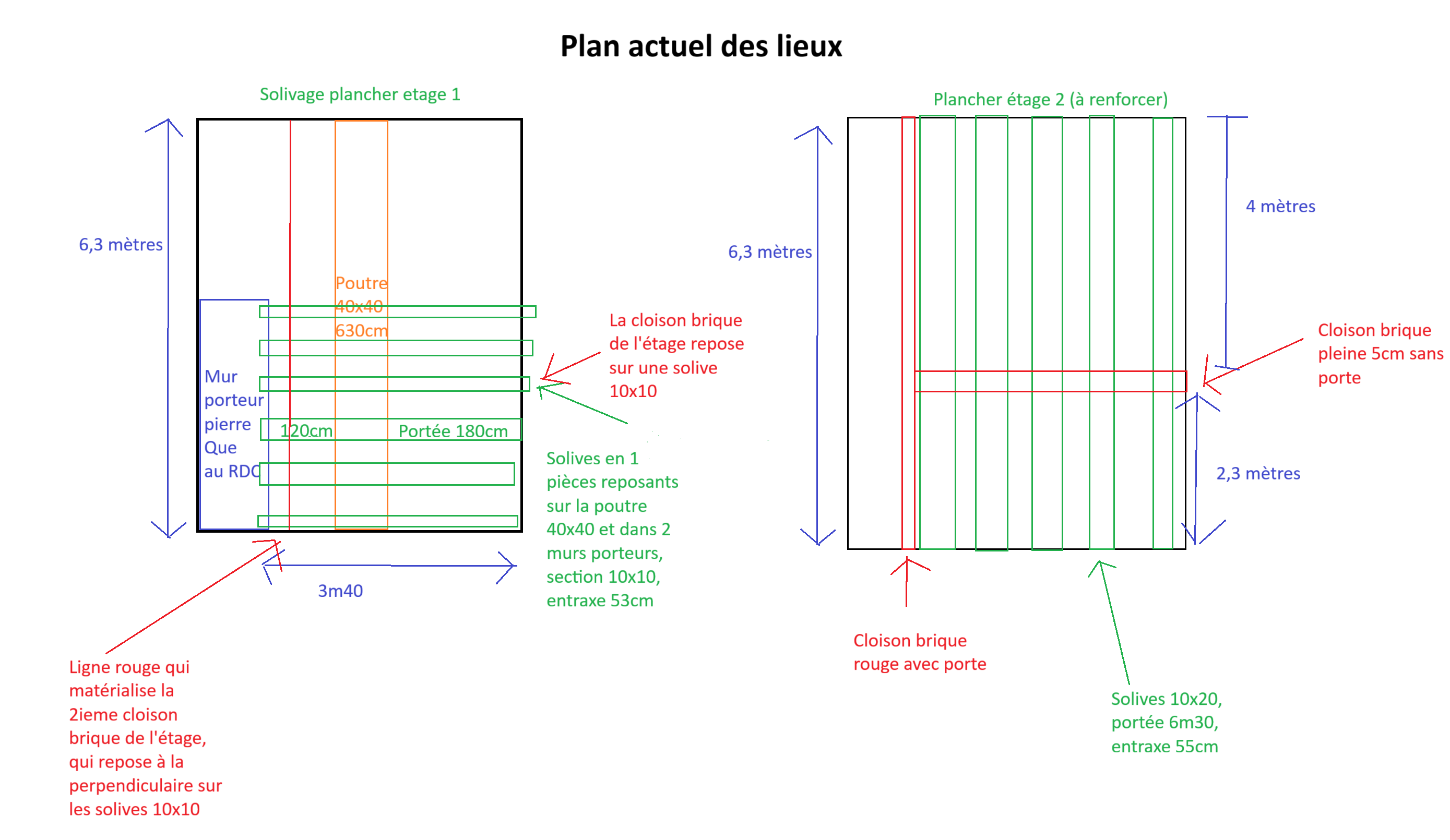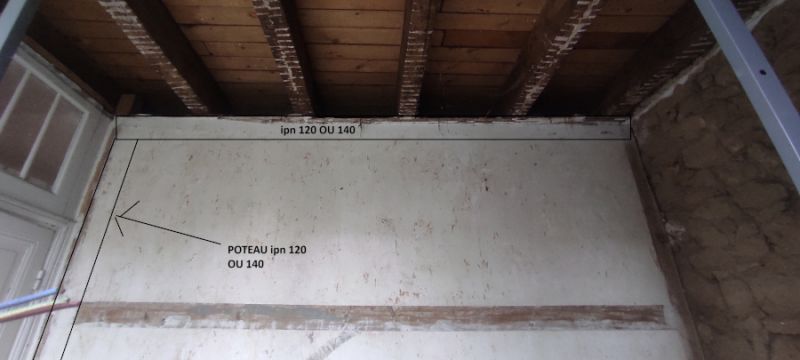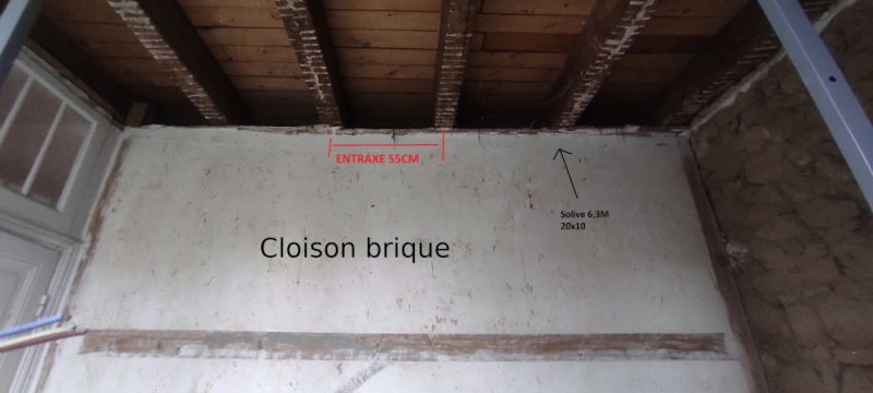 Il y a au milieu une cloison en brique pleine de 5cm mais ça je considère que ça ne porte rien du tout. La cloison est directement sur le parquet