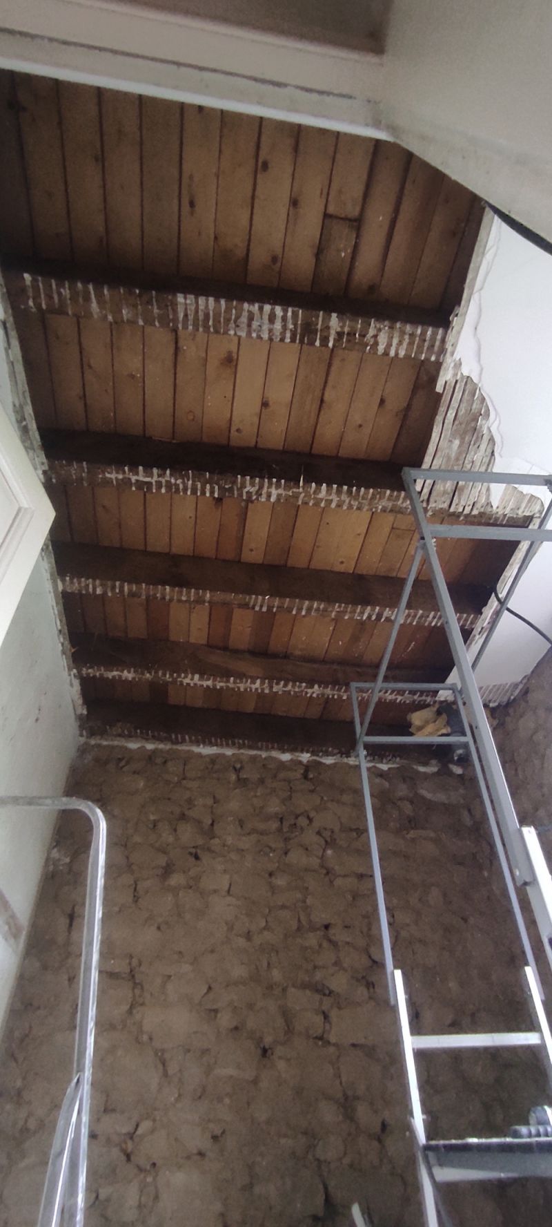 Actuellement on refait la salle de bain de l'étage 1, et on veut faire au plafond poutre apparente. On a donc vu sur les solives qui constituent le plancher du grenier.