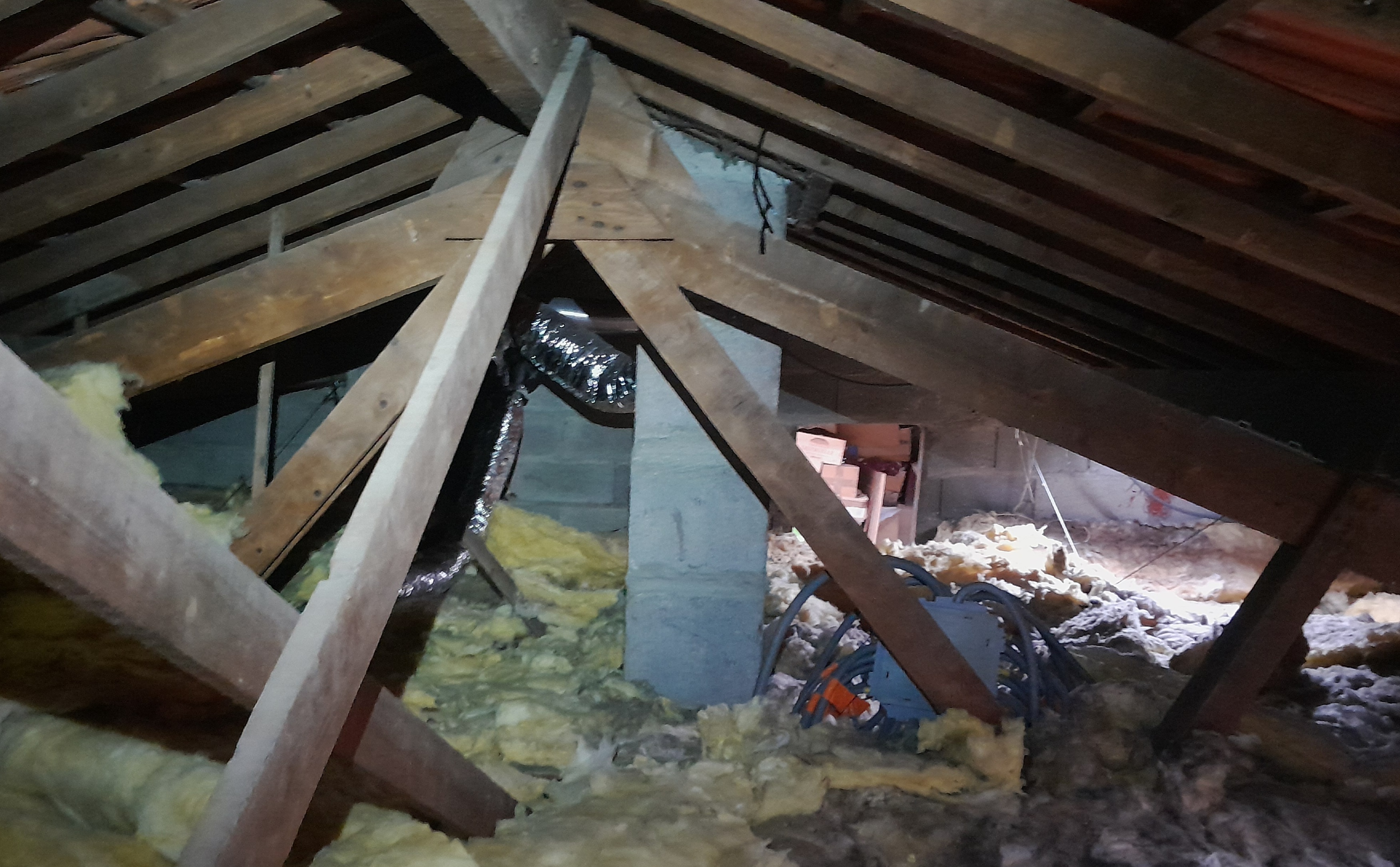 Renfort d'entrait et solivage pour isolation de combles perdues