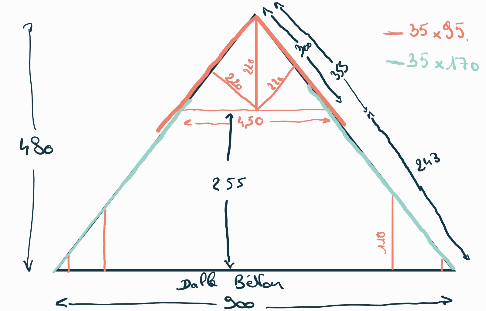 voici les mesures que j'ai pu relever, les couleurs permettent d'identifier les sections des bois: