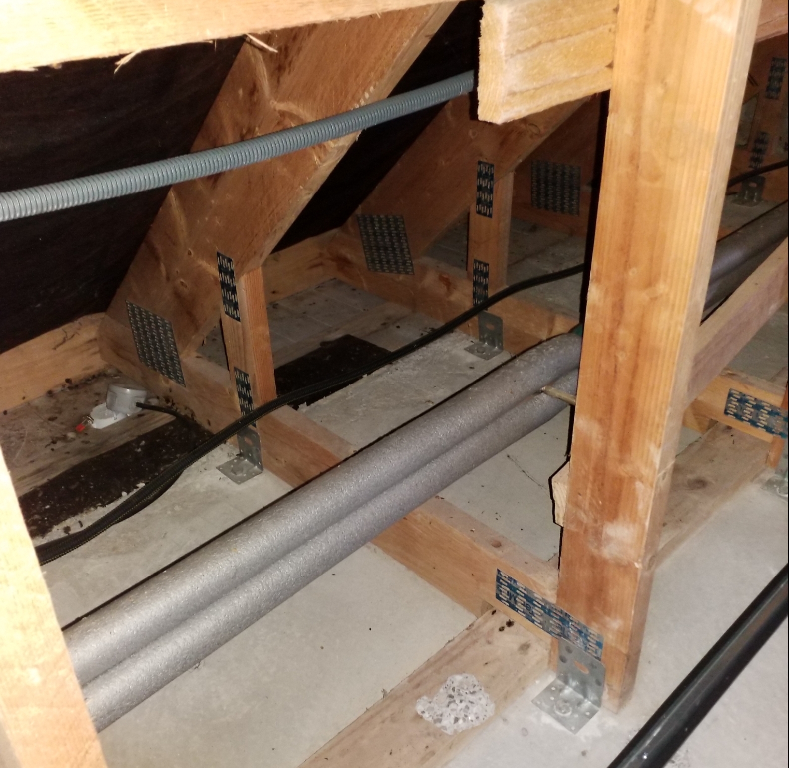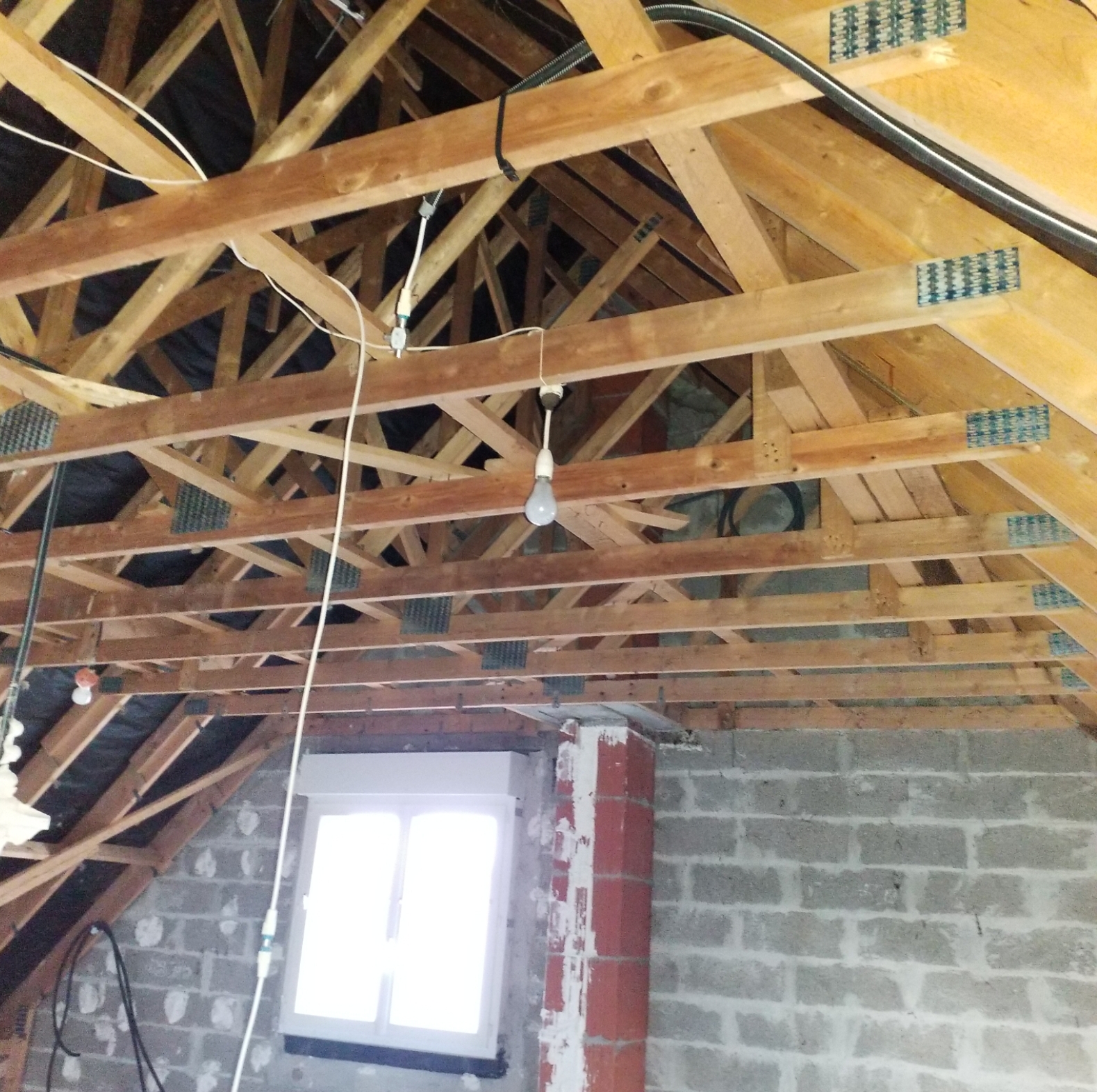 Ma charpente est de type fermette industrielle, elle est de 2005, il y avait déjà les trémies pour les velux. une partie etait dejà isolé avec de laine de verre.