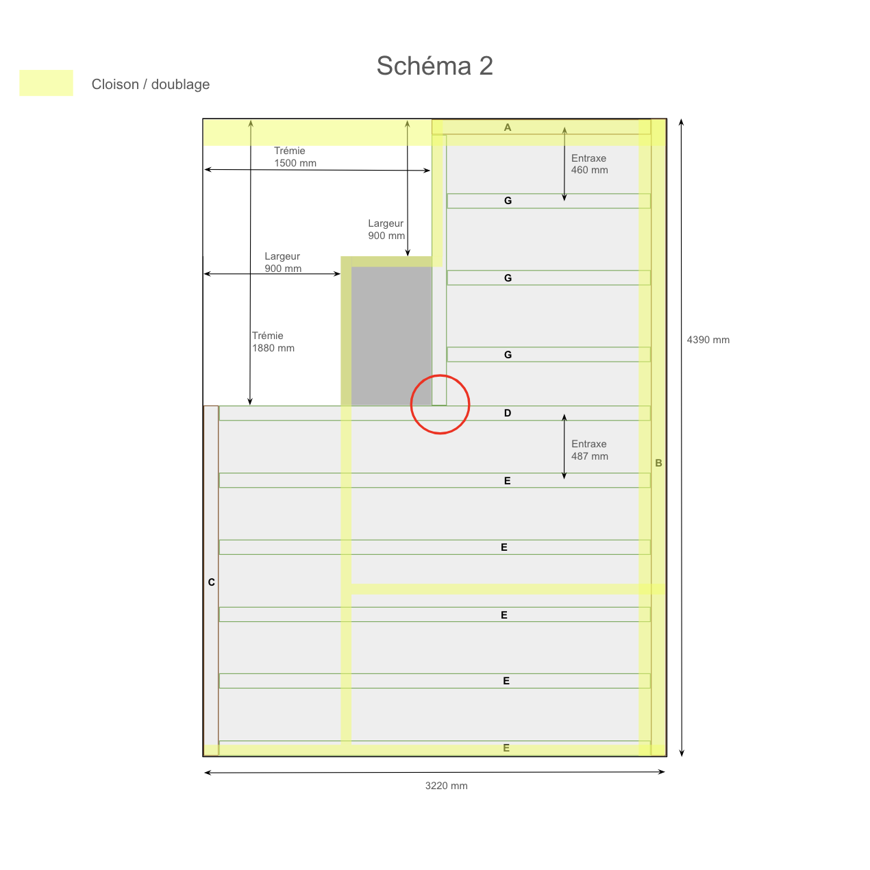 Mais cela pose de nouvelles questions, car je ne sais comment effectuer le solivage de la partie en gris foncé.