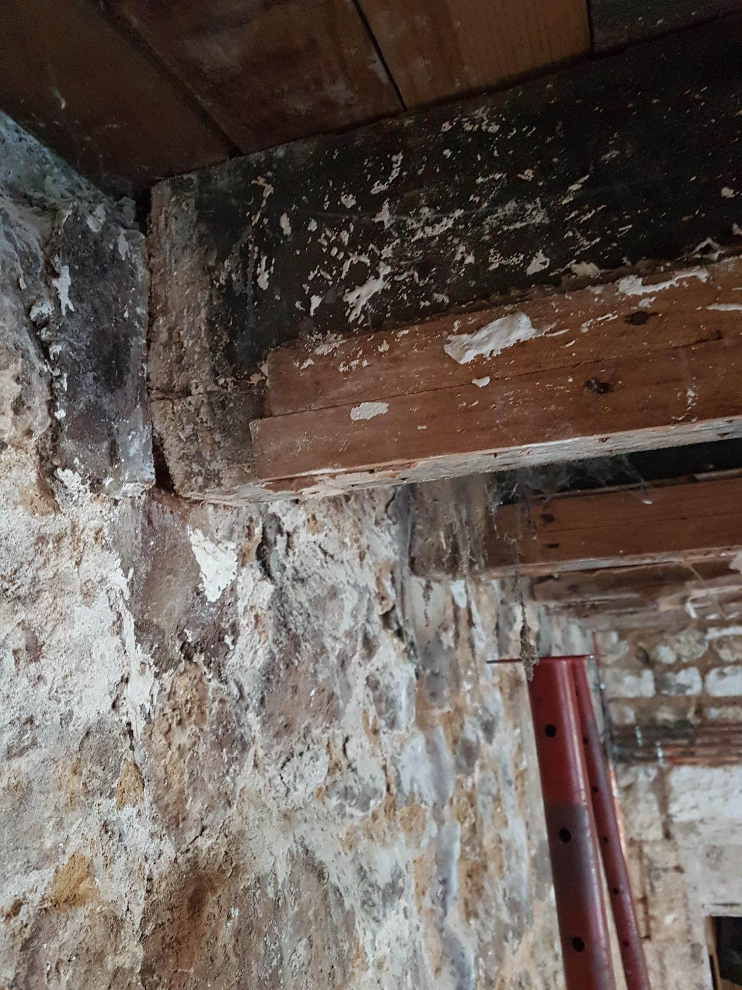 Donc seul le bout fiché dans le mur ouest est mort, en se décalant de 5 cm du mur on retrouve du bois sain.