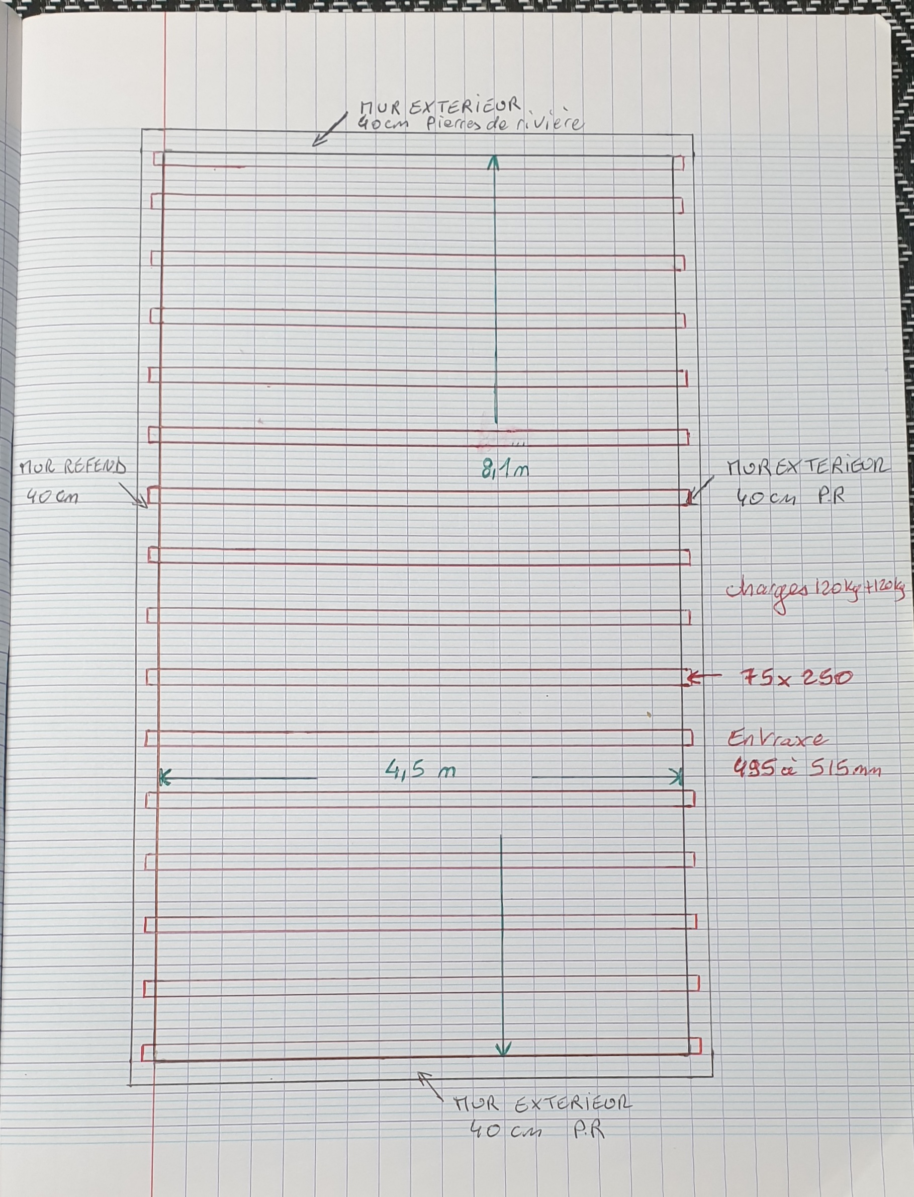 D'après les abaques consultées, il semblerait que mon dessin soit cohérent largeur de la pièce 4,5m x 8,1m de long.