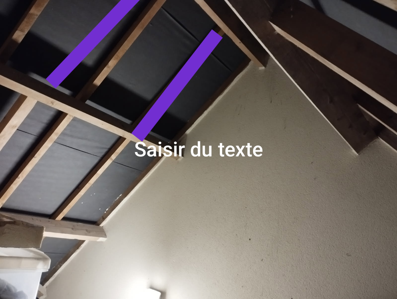 Faut t'il renforcer la structure afin d'y accueillir l'isolation et les plaques de BA13? Au niveau du chevêtre (traits violets)? des pannes supérieures?