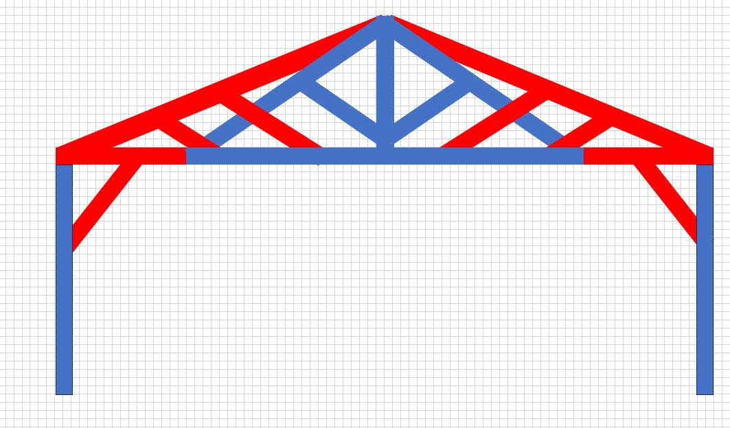 à 9 voir 10 de large sur 18 de long mais l'alléger en couverture puisqu'il est en ardoise naturel et je pense le passer en panneau sandwich 2x moins lourds. je vous mets mon projet d'élargissement dites moi si c'est réalisable. le bleu étant l'existant et le rouge les extensions. si il y a trop de renforts je suis à l'écoute. merci de vos conseils.