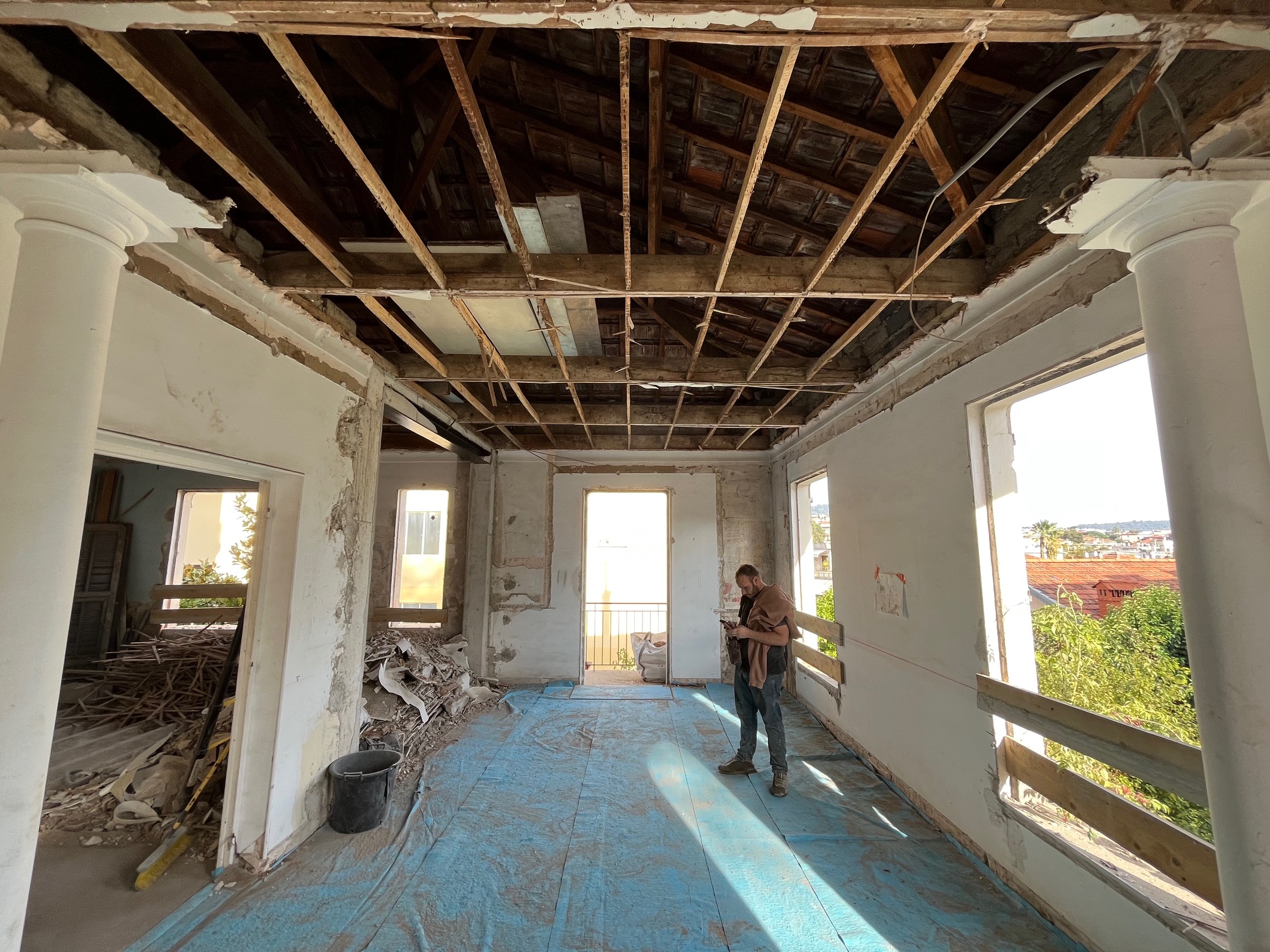 J'ai donc tout retiré et je vais donc installer de nouvelles solives, un nouveau plafond pour le R+1 et un plancher OSB pour les combles