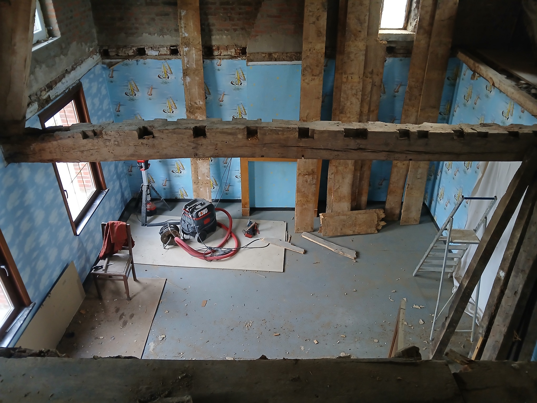 Vu que nous voudrions également rendre les combles habitables (sans améngement cloisons), nous voudrions nous assurer que le plancher résiste. Les anciens planchers de la maison ont tous clairement un effet « trampoline » quand on marche dessus.