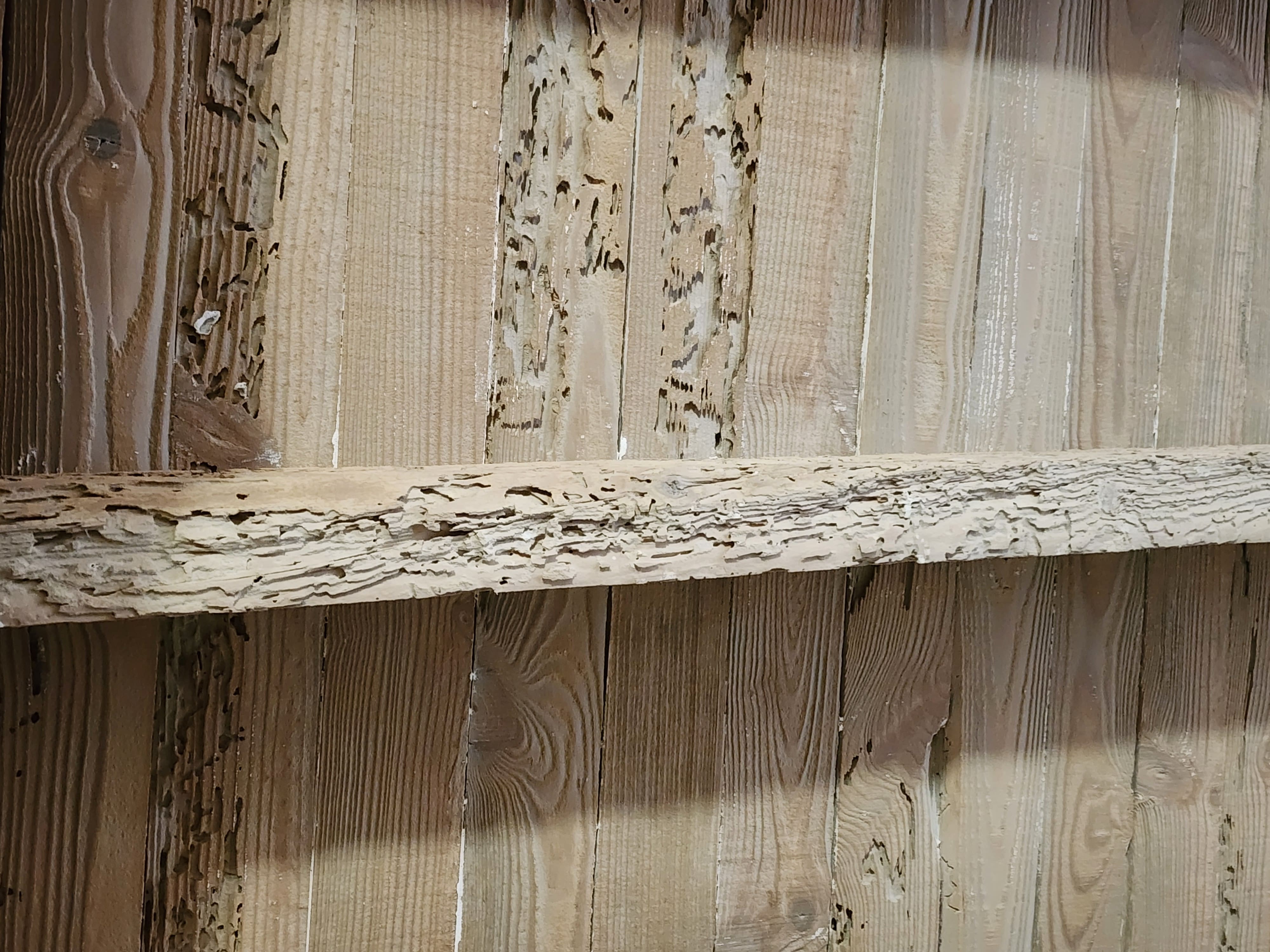Je viens de faire sabler mon plafond qui etait peint. Le sablage a révélé des traces de presence d'insectes. Je penses que ce sont des traces anciennes, parce que vu les trous qui ne se voyait pas avec la peinture, cela a du être rebouché puis peint par dessus.