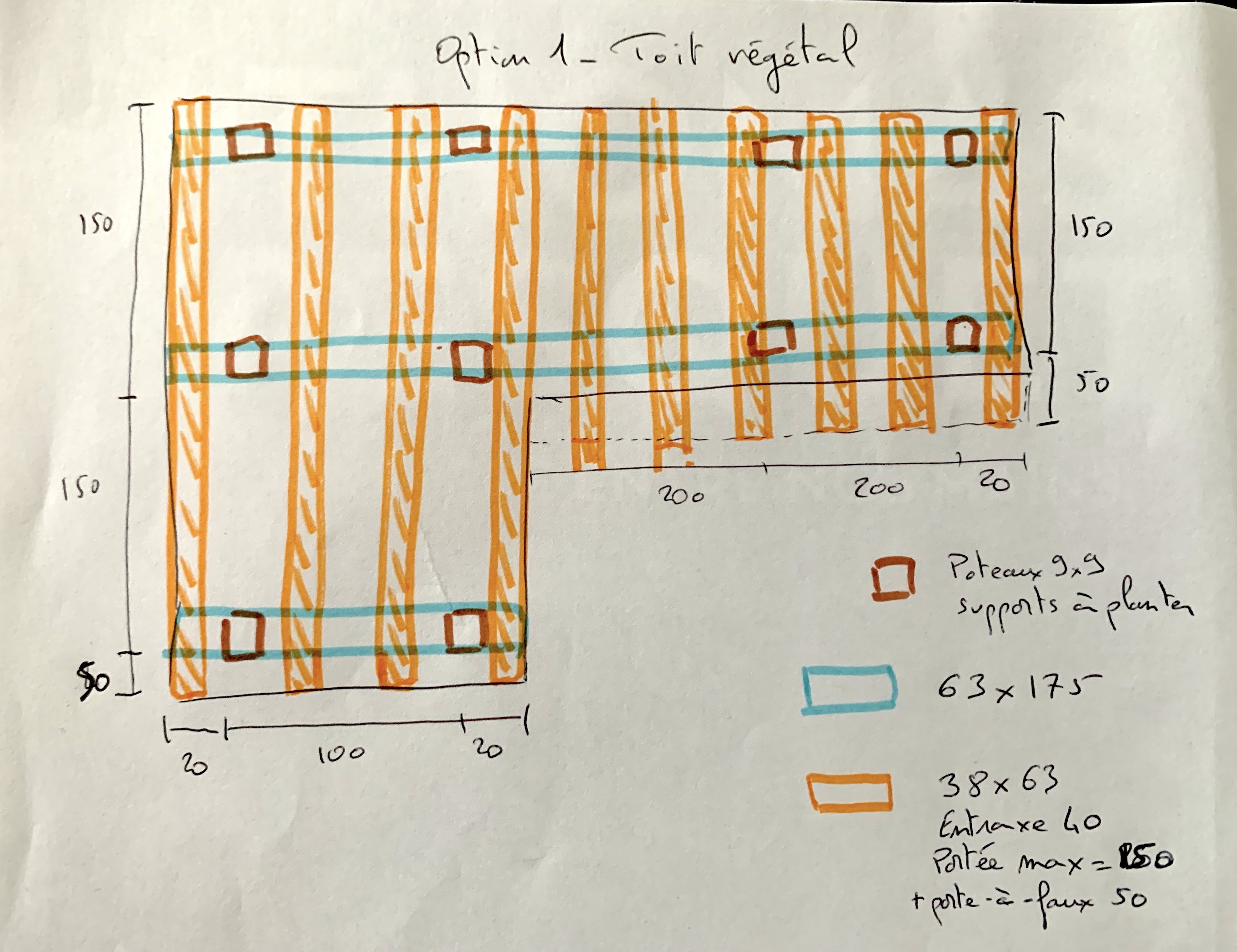Pour le toit végéral, j'ai d'abord essayé de voir avec des abaques, pour