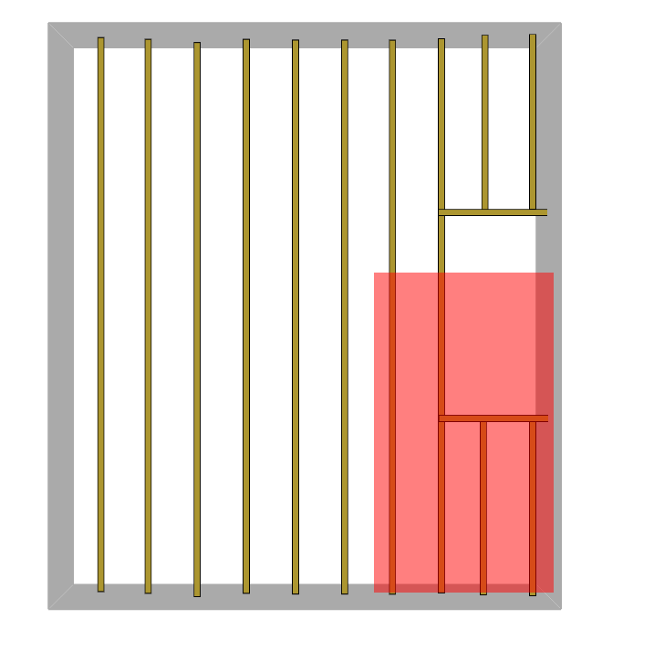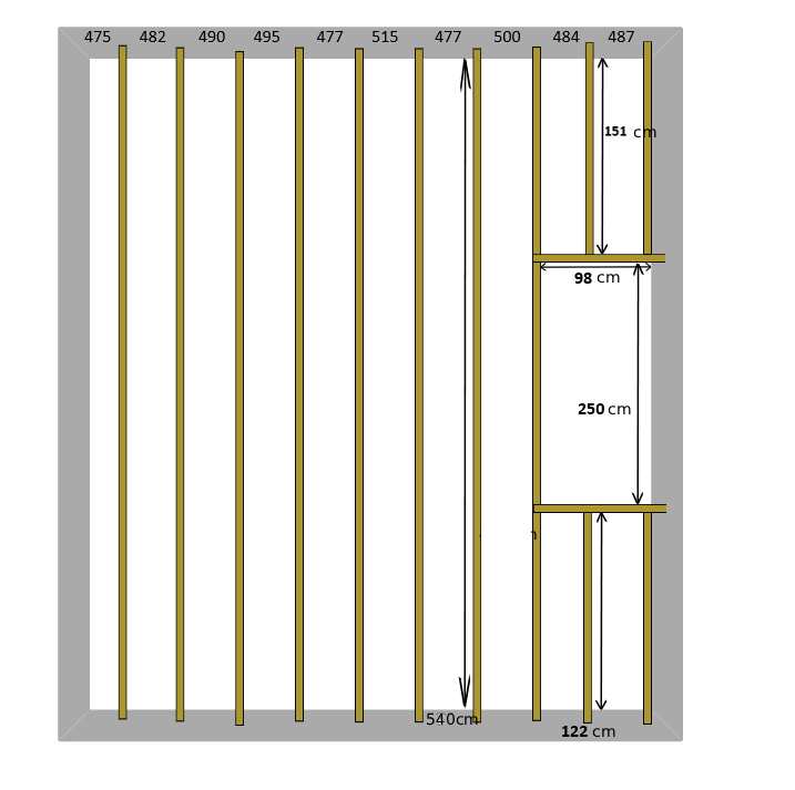 Ici je me pose question sur le fait de poser une muralière qui ne fasse pas l'entièreté de la portée de la pièce afin de ne pas avoir à remplacer les 2 bouts de muralière déjà présent au dessus et en dessous de la trémie, est-ce aussi solide qu'une muralière complète faisant tout le mur ? Et quid du dimensionnement de cette dernière ?