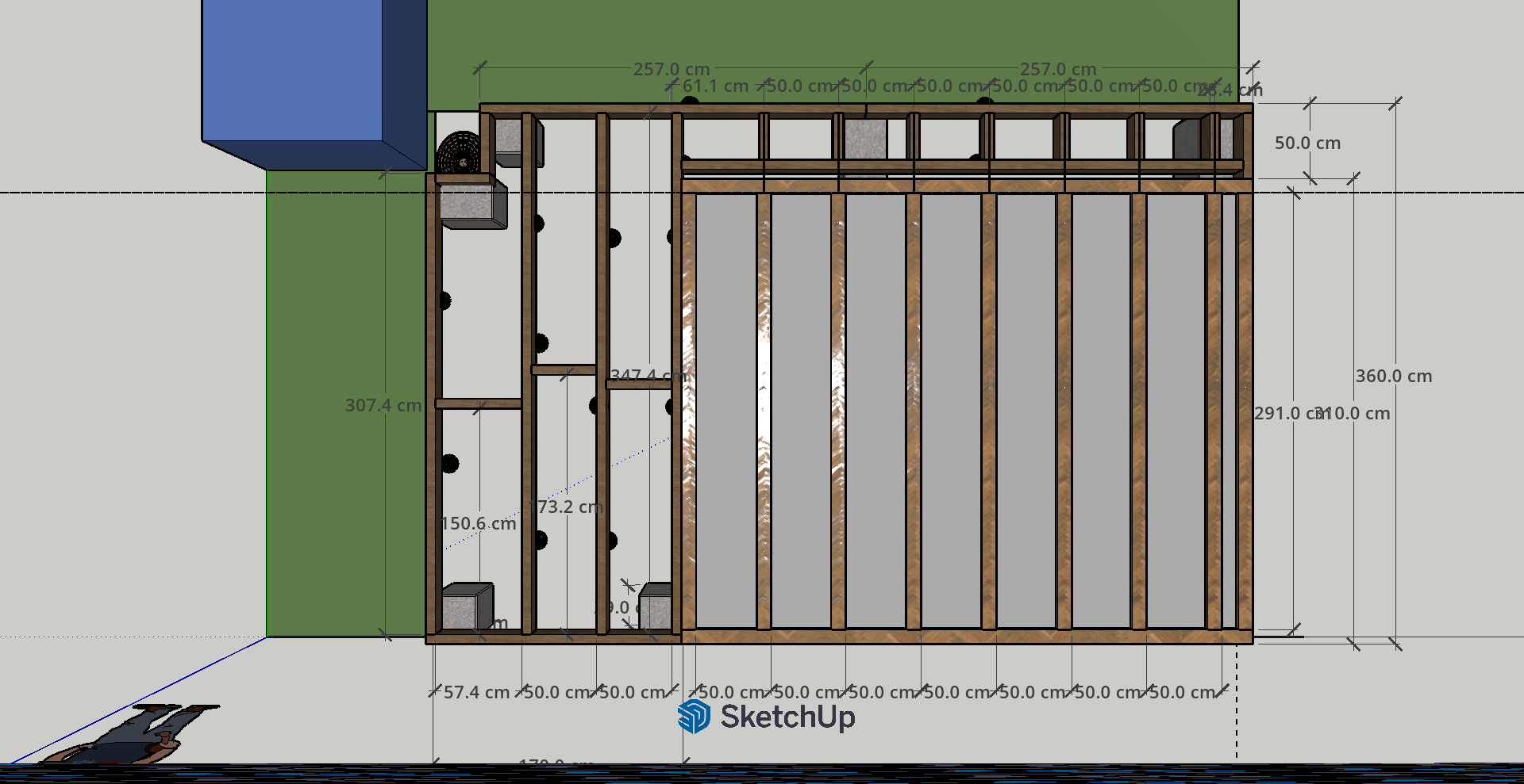 Je suis obligé de faire une "coupe" que un des angles car j'ai la trappe du tout à l'égout et je ne peux pas l'intégrer à l'intérieur de l'abri car dans ce coin, c'est le seuil endroit où je peux mettre mon récupérateur d'eau.