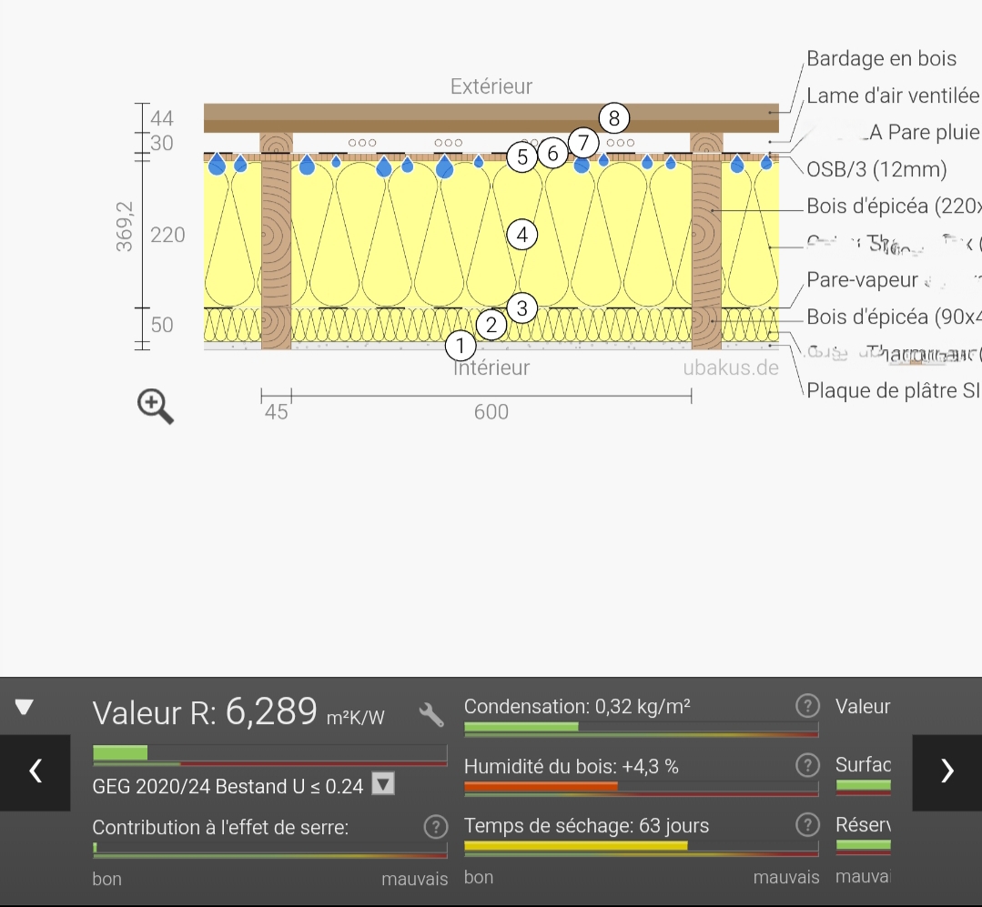 Ensuite un pare-vapeur ou un frein vapeur aucune idée. J'aimerais rajouter une couche de 6 cm de de laine de bois puis un petit vide technique et mes plaques de placo.