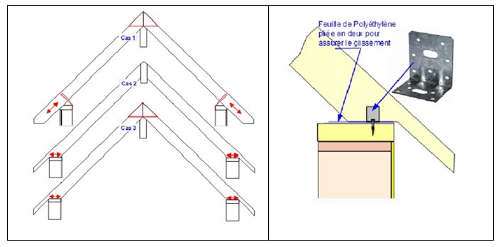 Les chevrons seront bloqués en pied par un chainage en BA. En partie haute ils reposeront sur une muralière fixée, dans un mur en pierre de Libourne, par des tiges filetées et scellements chimiques