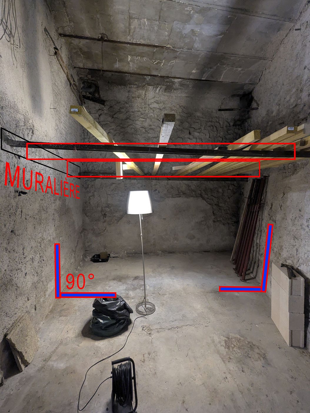 Je réfléchie à un projet de mezzanine portée par muralières, mais un des deux murs n'est pas très droits au niveau de la verticale.