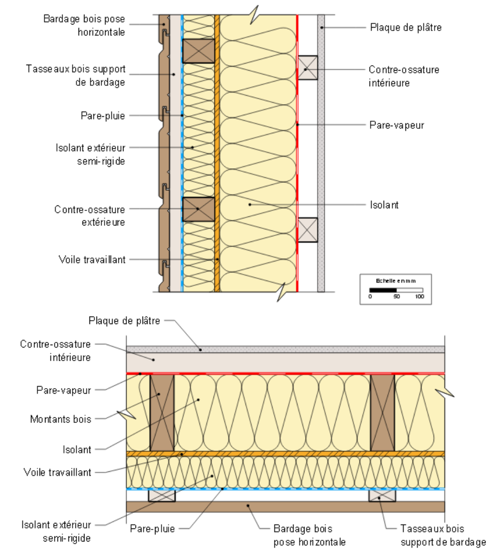 Nous sommes en train de construire une maison en ossature bois sur une dalle béton. Cette dalle est à hauteur de la terre. Une étanchéité béton 3 plis est prévue sur l'extérieur. Une chape sera coulée à l'intérieur. Quelles précautions faut-il prendre entre l'ossature bois et la dalle béton pour éviter tout problème d' humidité? Actuellement, il y a uniquement des cales en bois pour régler le niveau de l'ossature. Est-ce suffisant?